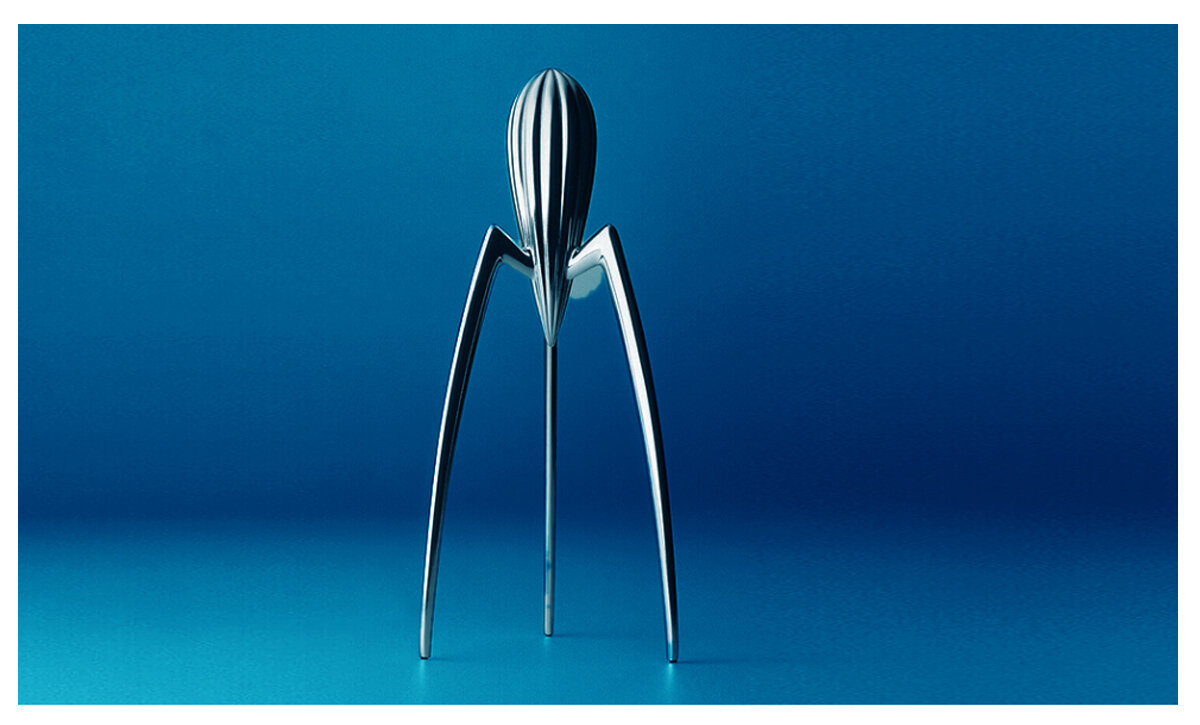 Это работа культового французского дизайнера Филиппа Старка. Не самая практичная модель — ее критикуют за то, что благодаря узкой форме полностью выжать сок из фрукта невозможно. Однако благодаря необычному внешнему виду соковыжималка до сих пор успешно продается и выставляется в музеях.
