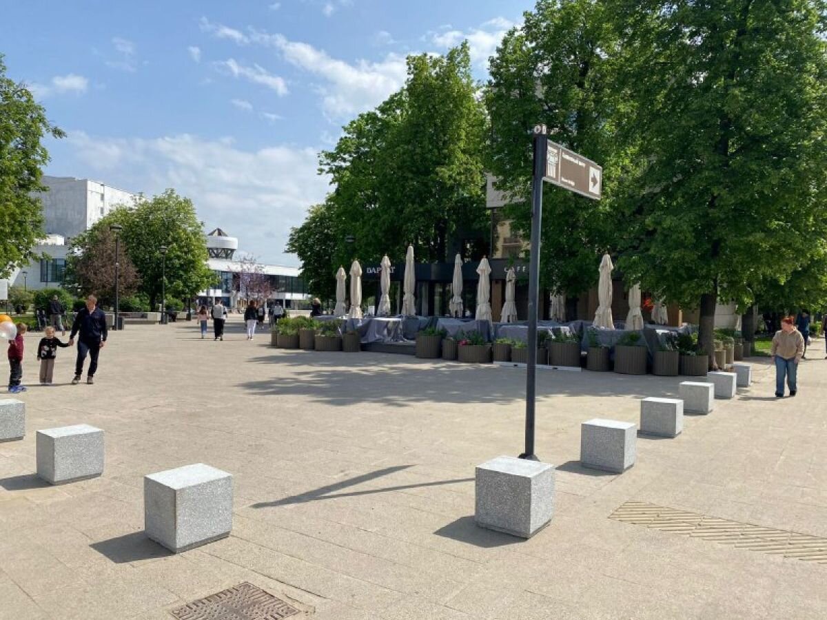 Кубы установили для ограждения Советской площади в Воронеже от паркующихся машин