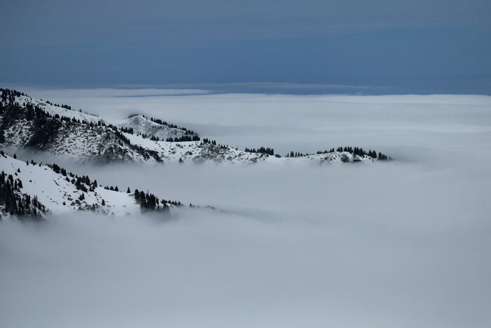 Приезжал в гости друг, в городе было дождливо и уныло. Что делать, вызвали такси - и через 20 минут поднимаемся на Шымбулак. Вверх: Ещё выше: Наконец... Граница облачности сверху выглядит куда интереснее, чем снизу, давно такой красоты не видели! Внизу под нами - ледник Богдановича. Ещё ниже - Алмата. Предприняли попытку дойти до Октябрьской пещеры, но свежего снега слишком много, закопались, не дошли. Зато получилось слетать на коптере к леднику Тили, панорамы вышли необычные, с сосулями) Уже внизу вспомнил, что хотел поснимать ускоренные/замедленные видео, но забыл. Так странно, когда внизу уже отцвели абрикосы, а всего в нескольких километрах ты проваливаешься в снег по пояс и жалеешь, что не взял лыжи! Пост автора kiiiba. Читать комментарии на Пикабу.