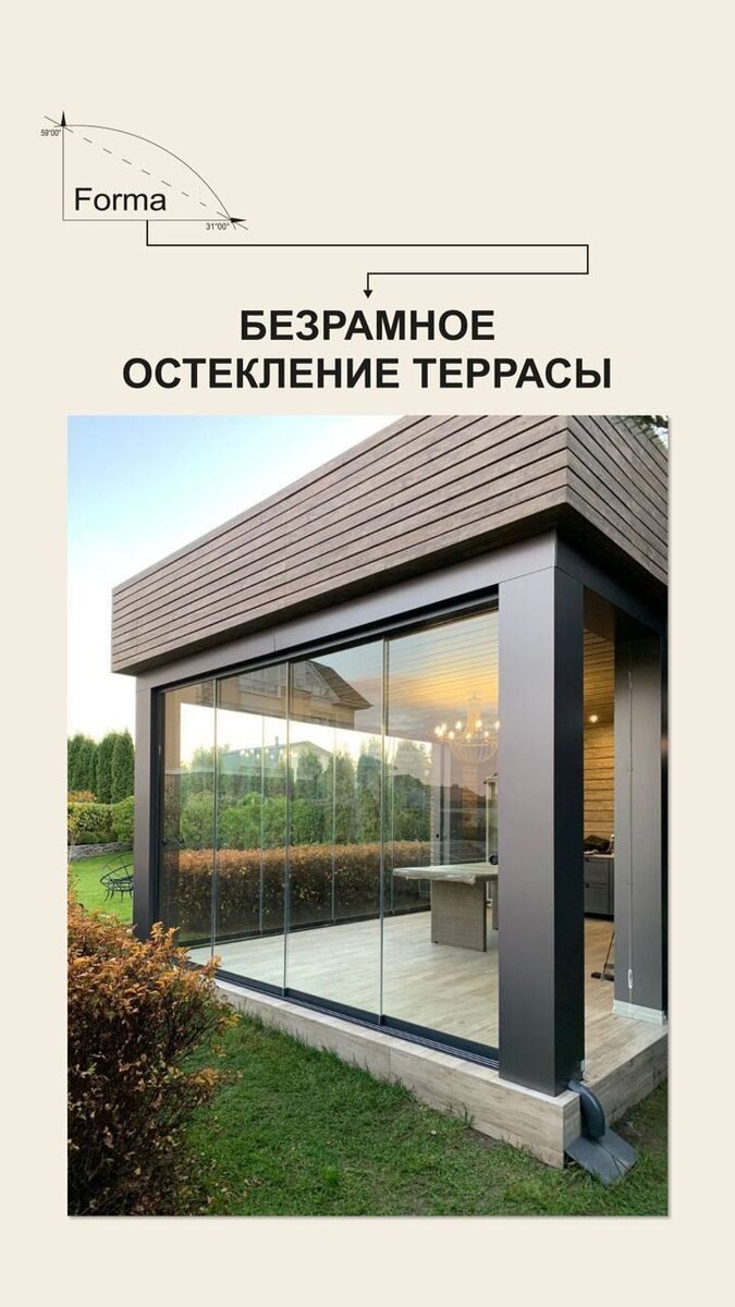 Forma.Glass предлагает свое видение по тому, каким может быть ваше будущее остекление террасы и веранды: Консультации по продукции вы можете получить по телефону: 8-800-222-14-38, наш сайт - https://forma.glass/