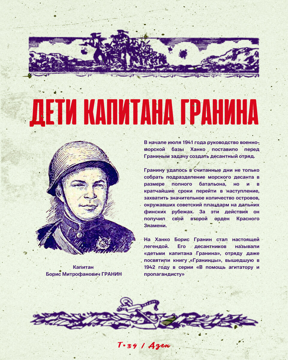 Слава о нём шла ещё со времени войны с белофиннами, когда Гранин, собрав отряд лыжников из артиллеристов форта и матросов боевых кораблей, повел его через заснеженный, завьюженный залив. Отряд, как ураган, ворвался в столицу Финляндии Хельсинки, поднял там страшный переполох и, не потеряв ни одного бойца, умчался обратно.
