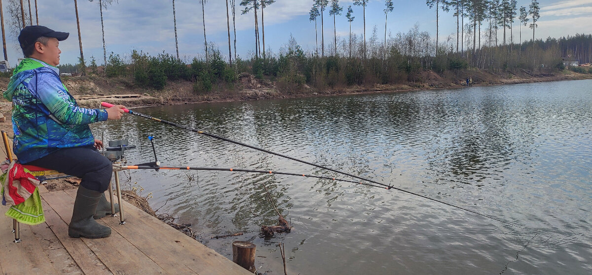 Привет, друзья! В этом году хотелось открыться пораньше, около 20 апреля. Но снегом так завалило, что не до открытой воды. Где то даже ледок встал... А потому решили открытие перенести на недельку. И вот 28 апреля. И решили мы собраться всем клубом "Драконы Севера" и открыться массово. Веселее! Водоем - платник с карпиками. Карпик средне-мелкий, самое то, что бы сезон распечатать. Нас 8 человек. На платнике теперь мосточки сделали - очень удобно. Минут через 10 первый пошел. Потом жена моя трех подряд. И понеслось. У меня задача была новые удилки проверить. И, по большому счету, место для этого просто отличное - моски высокие и до воды далеко и удилки нагружаются даже чрезмерно. Что и было нужно. Больше всего хотел протестить новую свою длинную, 6.3м самую легкую "Божественный огонь". Сдюжила без проблем, хотя и согнулась колесом. Да, дорогая удилка, но легкость феноменальная - шестеркой одной рукой орудуешь. В общем карасей ловить - лучшая удилка из опробованных мной. Очень легкая