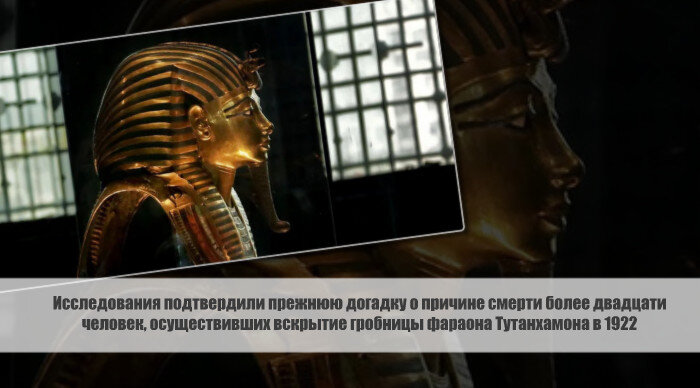 Результаты научного исследования, опубликованного в журнале "Scientific Exploration", подтвердили прежнюю догадку о причине смерти более двадцати человек, осуществивших вскрытие гробницы фараона Тутанхамона в 1922 году. Ученый Росс Феллоуз сделал вывод о том, что причиной стали радиоактивные вещества, существующие внутри гробницы. Все древнеегипетские источники предостерегали от возмездия тех, кто тревожит останки императорской династии, предупреждая "о невидимой болезни, которую даже опытнейший врач не сможет определить". Согласно статье Феллоуза, в этом происшествии нет никакой связи с мистикой или сакральными практиками.