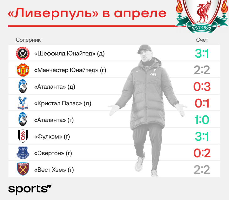 «Ливерпуль» закрыл провальный апрель гостевой ничьей с «Вест Хэмом» (2:2) и еще больше отдалился от борьбы за чемпионство. За месяц команда Юргена Клоппа выиграла всего два матча чемпионата из шести. Матч в Лондоне прошел по типичному для нынешнего «Ливерпуля» сценарию: ● Преимущество по ударам (28 – 11) и xG (1,64 – 0,7); ● Довольно необязательные голы: с углового в первом тайме и от Микаила Антонио во втором, когда нападающего упустил молодой защитник Джарелл Куанса, а «Ливерпуль» проводил лучший отрезок и давил; ● «Ливерпуль», казалось, перевернул игру сразу после перерыва – получилось быстро отыграться (забил Энди Робертсон) и повести в счете. Но на гол от Антонио ответов у мерсисайдцев на нашлось. Итог – 2:2. ● Звезда «Вест Хэма» Боуэн сделал 1+1. Для Джеррода это уже 16-й гол в Премьер-лиге – он настиг легендарного Паоло Ди Канио по мячам за сезон в АПЛ. «Мы должны были побеждать здесь, мы знали это, но не победили, и теперь у нас есть еще немного времени до следующей игры. Мы по