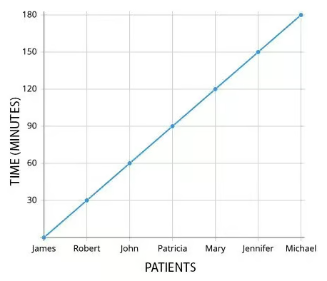 ΠΡΠΈΠΌΠ΅Ρ: ΠΏΡΠ΅Π΄ΠΏΠΎΠ»ΠΎΠΆΠΈΠΌ, ΡΡΠΎ ΡΡΠΎΠΌΠ°ΡΠΎΠ»ΠΎΠ³ ΡΡΠ°ΡΠΈΡ 30 ΠΌΠΈΠ½ΡΡ Π½Π° ΠΏΡΠΈΠ΅ΠΌ ΠΎΠ΄Π½ΠΎΠ³ΠΎ ΠΏΠ°ΡΠΈΠ΅Π½ΡΠ°. ΠΠΎ ΠΌΠ΅ΡΠ΅ ΡΠ²Π΅Π»ΠΈΡΠ΅Π½ΠΈΡ ΠΎΡΠ΅ΡΠ΅Π΄ΠΈ ΠΏΠ°ΡΠΈΠ΅Π½ΡΠΎΠ², Π²ΡΠ΅ΠΌΡ, Π½Π΅ΠΎΠ±Ρ ΠΎΠ΄ΠΈΠΌΠΎΠ΅ Π΄Π»Ρ ΠΏΡΠΈΠ΅ΠΌΠ° Π²ΡΠ΅Ρ ΠΏΠ°ΡΠΈΠ΅Π½ΡΠΎΠ², Π±ΡΠ΄Π΅Ρ ΡΠ°ΡΡΠΈ Π»ΠΈΠ½Π΅ΠΉΠ½ΠΎ ΠΏΡΠΎΠΏΠΎΡΡΠΈΠΎΠ½Π°Π»ΡΠ½ΠΎ ΠΊΠΎΠ»ΠΈΡΠ΅ΡΡΠ²Ρ ΠΏΠ°ΡΠΈΠ΅Π½ΡΠΎΠ² Π² ΠΎΡΠ΅ΡΠ΅Π΄ΠΈ.