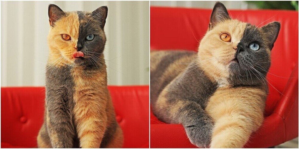 Многие думают, что она ненастоящая: настолько идеально её раскрасила природа. Очаровательная британская короткошерстная кошка Домино стала знаменитостью в соцсетях. Кошечка живёт в Нидерландах вместе с хозяйкой Джослин Антонио, которая взяла её ещё крохотным котёнком. Она увидела её в одном из питомников Бельгии и сразу решила, что хочет забрать себе это уникальное создание. По словам хозяйки, кошечка ведёт себя как настоящая дива, однако, любит воровать еду. "Домино - настоящая дива. Но она очень игривая, активная и любопытная. А ещё - она крайне любит поесть. Я всегда слежу за тем, чтобы не оставлять еду на столе или на столешнице, когда никого нет рядом, потому что Домино любит воровать еду из тарелок, сковородок и кастрюль," - рассказывает хозяйка. Некоторые подписчики, следящие за жизнью Домино в соцсетях, считают, кошка ненастоящая, или её окрас нарисовали с помощью искусственного интеллекта. Но это не так: она просто кошка-химера - обладательница редкой и красивейшей особеннос