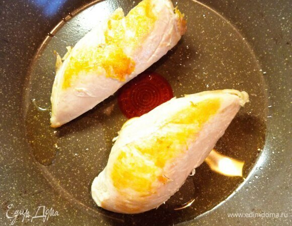соевый соус - 1ст. л. Шаг: 1 Вареные куриные грудки обжариваем в 1 ст. л. растительного масла до желаемого румянца. Даем остыть. Шаг: 2 Шампиньоны очищаем влажной салфеткой, режем не очень мелко и обжариваем на растительном масле минут 5–7, добавляем соевый соус и продолжаем жарить до полного выпаривания жидкости. При желании солим и перчим по вкусу. Шаг: 3 Готовим соус. Смешиваем йогурт, кетчуп, я добавила еще немного острого соуса шрирача, в рецепте его не было. Солим и перчим по вкусу. Шаг: 4 Апельсин чистим, разделяем на дольки, очищаем от пленок и режем. Шинкуе