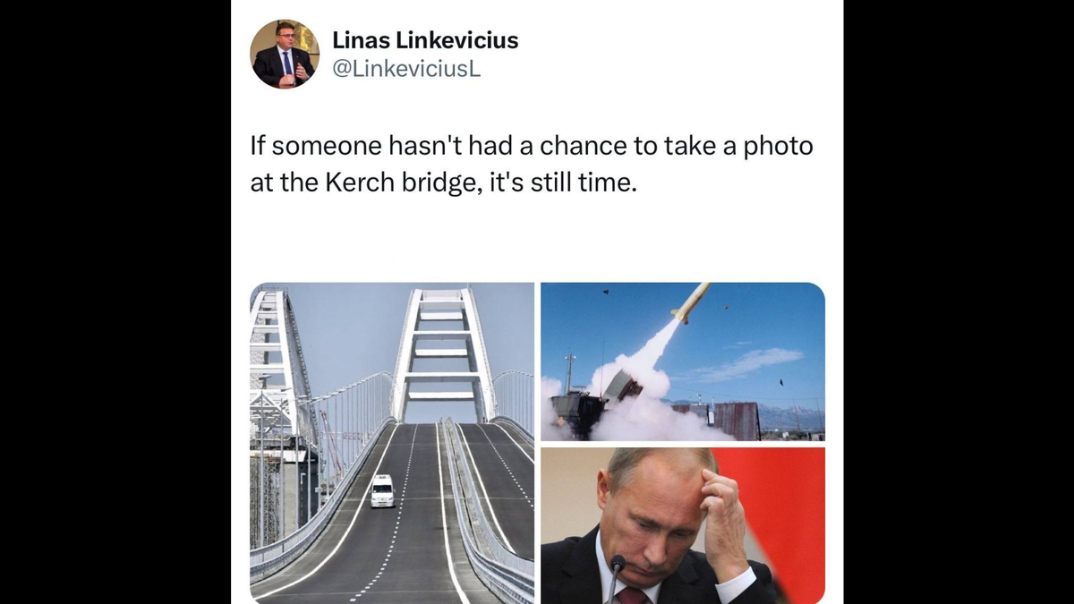 Удивительное рядом. Посол Литвы в Швеции опубликовал пост в котором намекнул на предстоящий удар по Крымскому мосту. Линас Линкявичус написал: