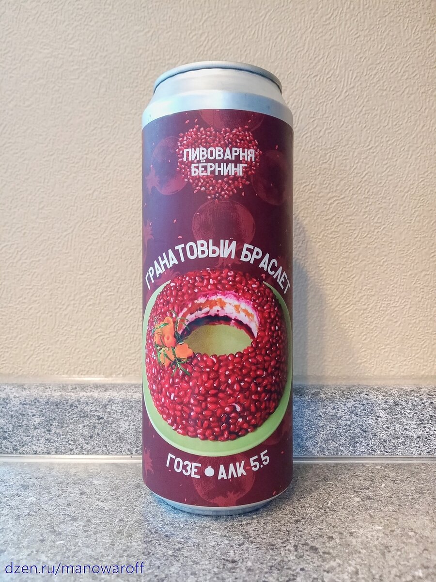 В виде одноименного пива от пивоварни Burning Brewery. Судя по этикетке, пиво посвящено не повести Куприна, а многослойному кольцевому салату из репертуара русской кухни (который, впрочем, получил название благодаря произведению Куприна). Дебют этого извращения состоялся в декабре прошлого года. У меня же баночка из февральской партии, а вскрыл я ее через пару месяцев после розлива. Срок годности составляет 365 суток при хранении в холодильнике. Почитаем описание: Ощутите великолепную гармонию вкусов салата Гранатовый браслет. Нежный куриный бульон, приготовленный по особому рецепту, который придаёт салату бархатистость и насыщенность вкуса. Сок киви, который даёт неповторимую свежесть и лёгкую кислинку, прекрасно сочетается с остальными ингредиентами. Сок граната предоставляет сладкое и освежающее послевкусие, сбалансированное тонкими нотками кислинки. Какое киви? В составе оно не значится: ТТХ: Пиво не самого аппетитного, красновато-коричневатого оттенка. Довольно густое. Пены нет.
