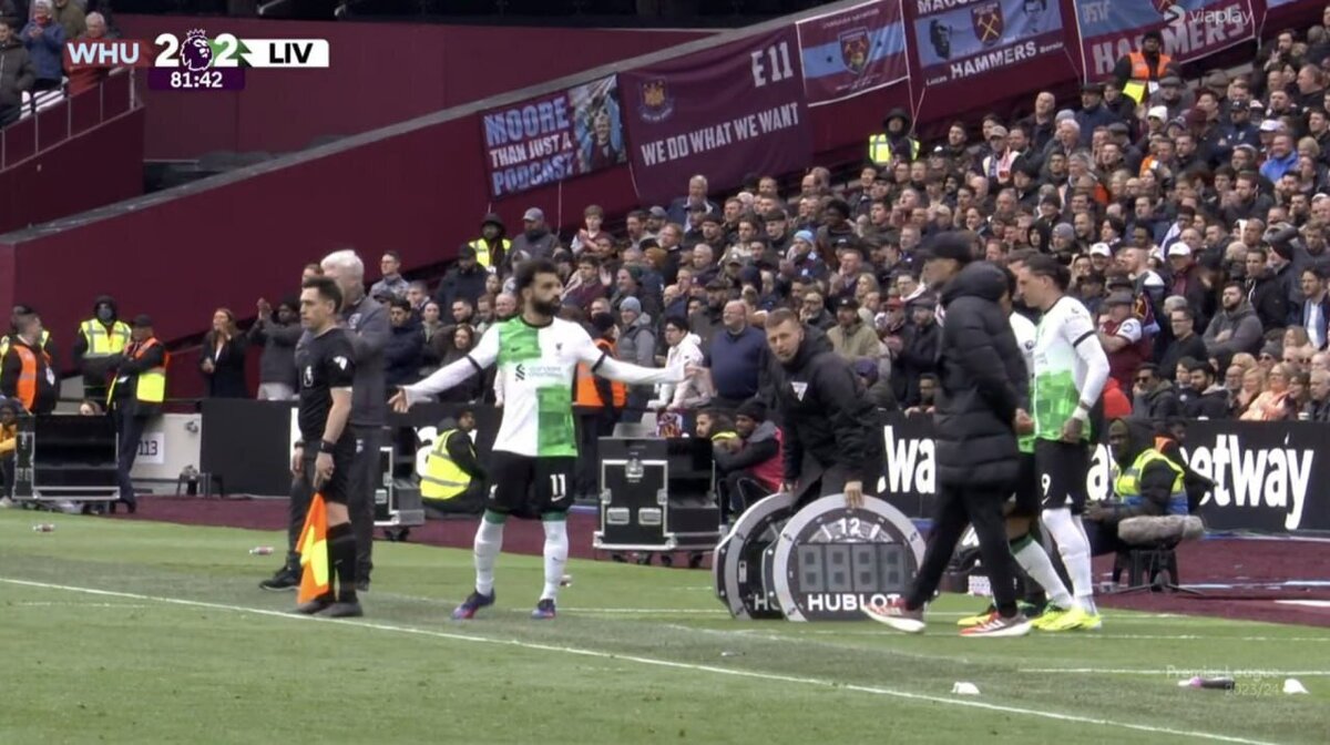 Нападающий «Ливерпуля» Мохамед Салах продолжает расстраивать своим поведением фанатов. Египтянин вышел на замену в конце матча с «Вест Хэмом», но конфликт с Юргеном Клоппом случился ещё до выхода на поле. Дошло до того, что разниматься коллег пришлось Дарвину Нуньесу. После игры Салах отказался давать интервью прессе, заявив: «Если я буду сегодня готорить... Начнётся пожар». Причина конфликта по-прежнему неизвестна, но Юрген Клопп уже заявил, что побеседовал с игроком в раздевалке. Добавим, что «Ливерпуль» не сумел победить «Вест Хэм» в матче 35-го тура АПЛ. Игра закончилась со счётом 2:2.