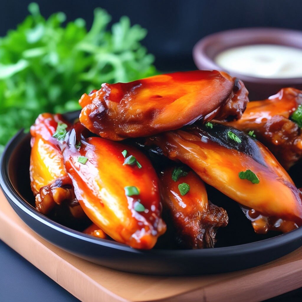 Ингредиенты: Куриные крылышки - 500 г Чеснок - 2 зубчика Соевый соус - 3 ст.л. Мёд - 1 ст.л. Оливковое масло - 1 ч.л. Паприка молотая - 0,5 ч.л. Соль - по вкусу Перец чёрный молотый - по вкусу Приготовление: 1. Подготовьте все ингредиенты. 2. Крылышки промойте и обсушите бумажным полотенцем. 3. Чеснок очистите и нарежьте на мелкие кусочки. 4. В миске смешайте соевый соус, мёд, оливковое масло, паприку, соль и перец. 5. Добавьте чеснок и перемешайте. 6. Залейте крылышки маринадом и оставьте на 30 минут. 7. Выложите крылышки в форму для запекания и поставьте в духовку, разогретую до 180 градусов, на 25-30 минут, периодически поливая маринадом. 8. Запеченные крылышки готовы! Подайте их горячими с любимым соусом.