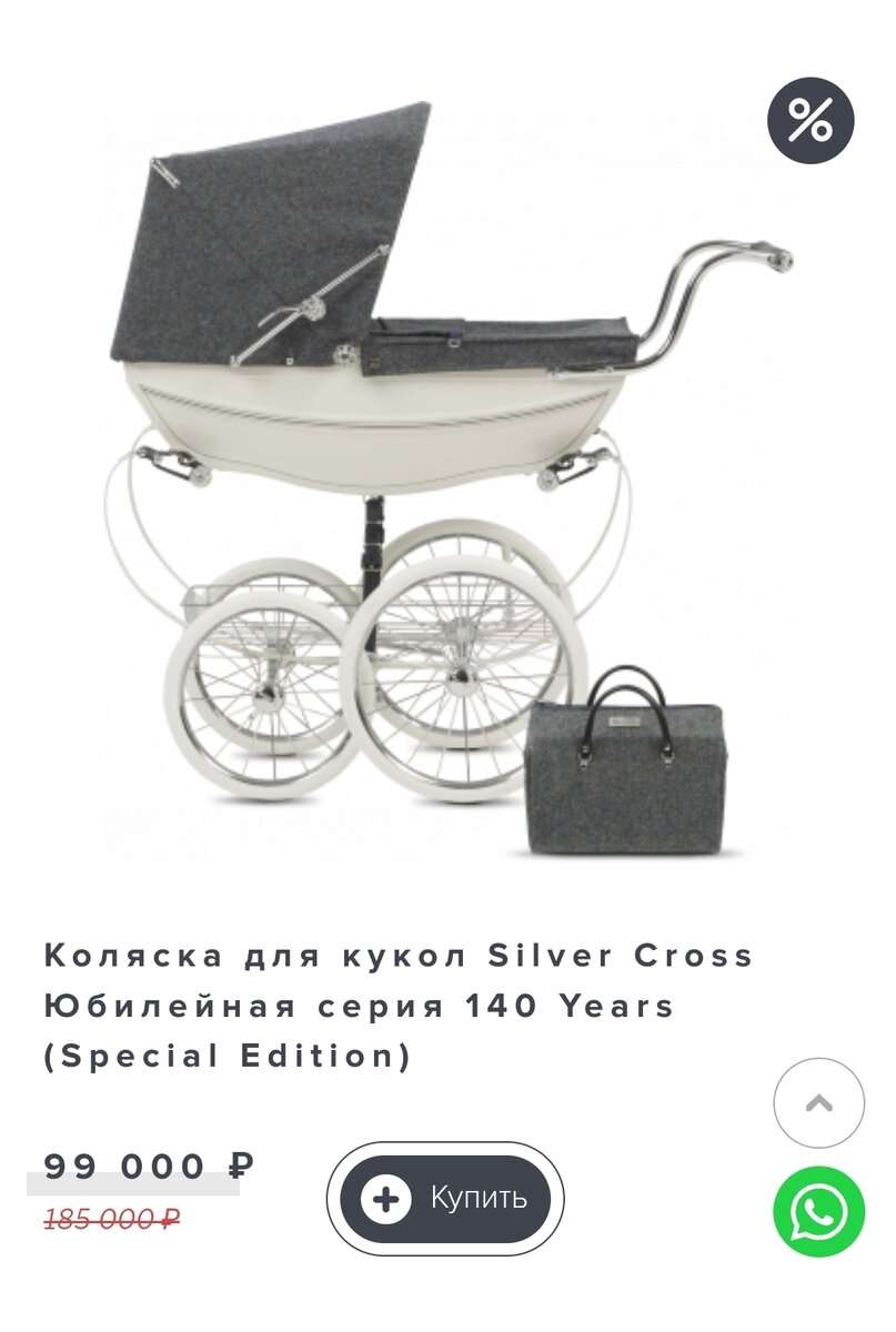 Всех приветствую. Попросили тут в садик к младшей принести коляску, ну смотрю очередь желающих не набежала, решила просто купить на Авито недорогую до 1000 рублей колясочку и отнести. Что-то я не туда тыкнула и мне выскочили дорогие коляски. Я сначала даже подумала, что это не игрушечные, а настоящие. Присмотрелась, ан нет игрушка. Захотелось помониторить цены, представляю вам свою подборочку. 1 место Коляски Silver Cross цена новой со скидкой от 52000 до 99000 рублей. Для детей тоже делают. Давайте в комментариях погадаем цену на взрослый размер. Это английский бренд с уже более чем столетней историей, который поставляет свои изделия королевским персонам и поп-звездам. Название бренд получил по названию улицы в городе г. Лидс, где компания начала свое существование. Каждая коляска собирается вручную. На Авито такую колясочку для кукол можно купить от 10000 до 50000 в зависимости от состояния. Мне понравилась вот такая за 20000. 2 место Коляска La Nina. Это испанский бренд, стоимость