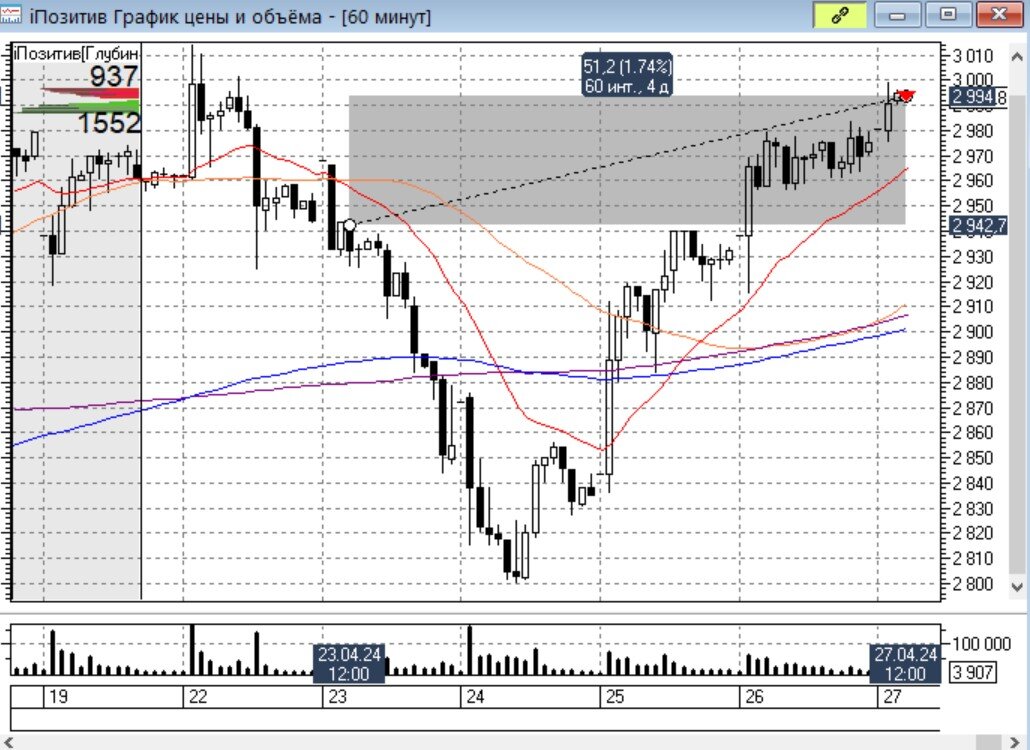Заканчиваем торговую неделю с прибылью. По акциям Позитива закрываем ранее выставленную цель, закрываем тейк-профит с прибылью 1,7%.