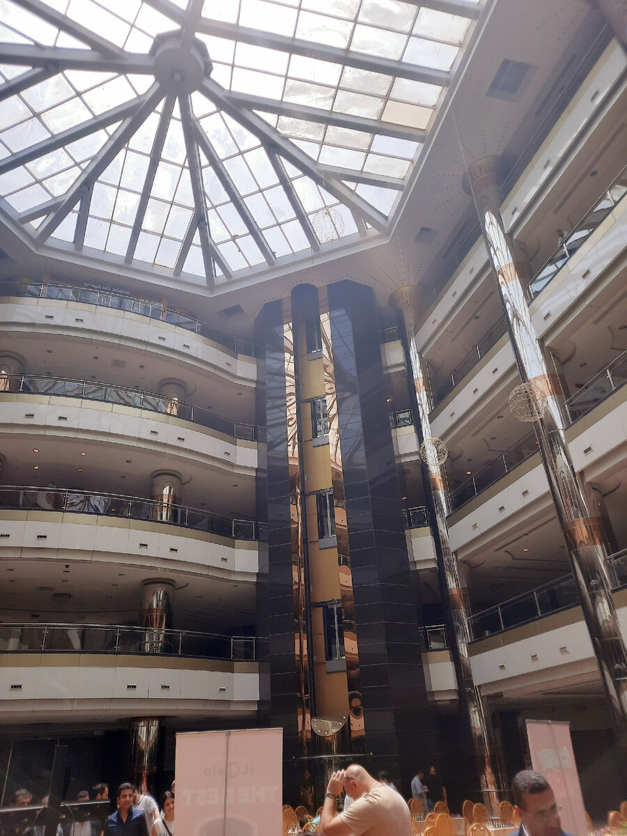 Оказались мы здесь по воле случая: организаторы очередного шахматного чемпионата решили, что он подходит для турнира. И оказались правы: даже в выходной день там почти не было посетителей, только шахматисты. Сан сити молл в Каире выглядит как шикарный отель: все украшено позолотой, вверх-вниз снуют наружные лифты, пять этажей. И ... пустота. При этом везде видны следы явной успешной жизни, от которой остались только вывески. Когда-то здесь был сам мистер Карфур, крупнейший турецкий бренд Вайкики и другие мировые имена. Но печальнее всего выглядит фудкорт: огромное пространство с очень плохим освещением и сотни пустых столов: А что делать? Приходится экономить свет. Из былого величия остался только Макдональдс, да и у того не горит табло электронных заказов?: они такие редкие, что очереди соблюдать не нужно. Да рядом пристроился египетский бренд пиццы и бургеров. Очевидно, что 180 шахматистов и их свита явно оживили фудкорт: они сами не понимают, радоваться или плакать такому нашест