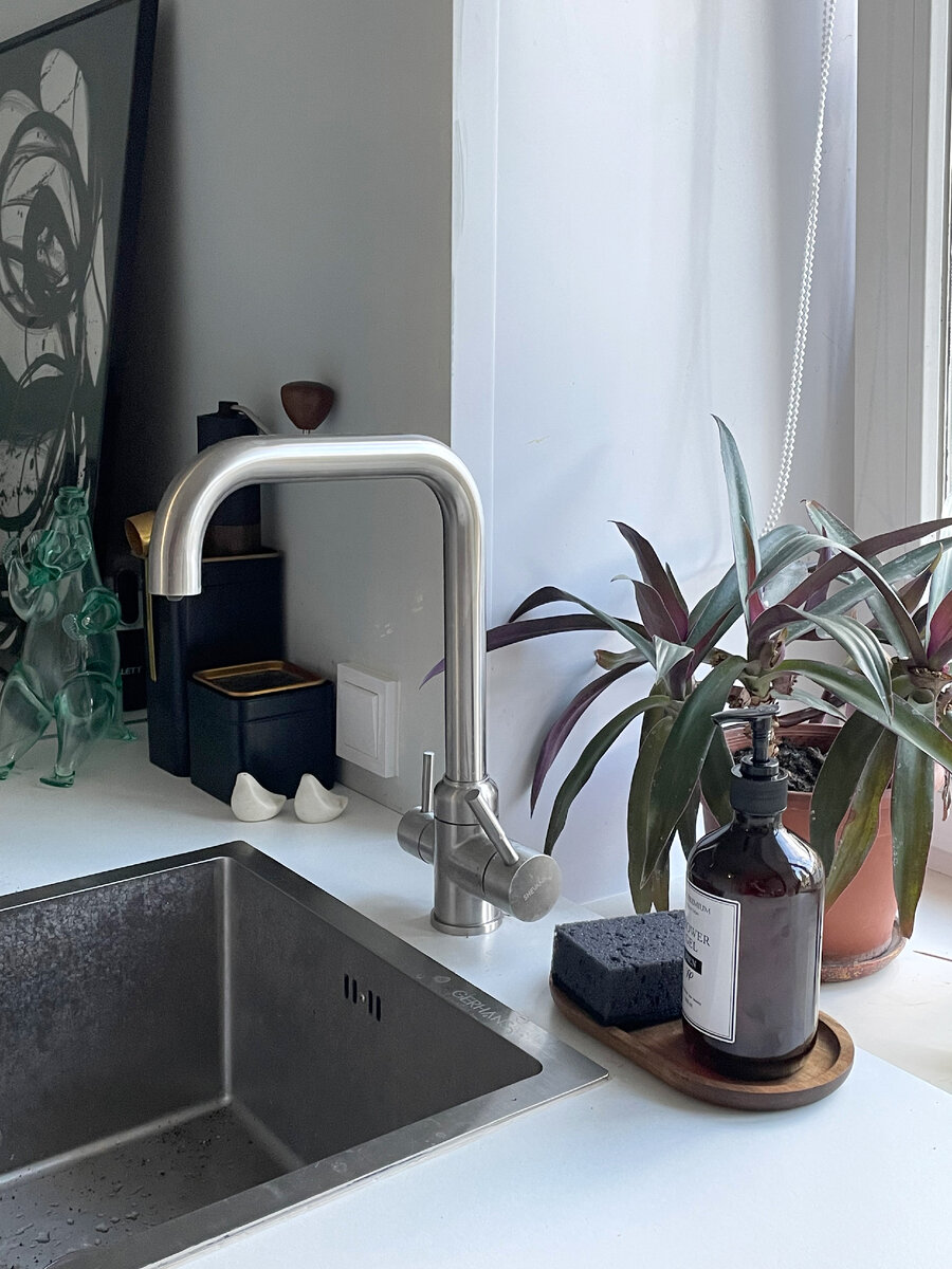 Начало Мебель на кухню решили сделать самим. Звучит пугающе, но мы справились. Начали с распила старой кухни и шкафа от прежних хозяев. По стрелке на фото - другие, листайте, если хотите увидеть больше Оказалось, что старая кухня очень узкая. Да и высота для наших высоких детей маловата. Поэтому взялась пилить и клеить боковины пошире и повыше. По стрелке на фото - другие, листайте, если хотите увидеть больше Но доноры быстро кончились, пришлось покупать еще ДСП в местном магазине. Большой лист ДСП нам распилили по нашим размерам. Обошлось совсем не дорого. Плюс купили фурнитуру, кромочную ленту, грунтовку и акриловую эмаль. Но эти траты не сопоставимы с покупкой готовой кухни! Тумбы собирали на конфирматы. Для сверления отверстий под них есть специальное сверло с двумя диаметрами. Это гораздо удобнее, чем сверлить попеременно двумя разными сверлами. По стрелке на фото - другие, листайте, если хотите увидеть больше Сложная работа была с ящиками. Купили для них направляющие скрытого мон