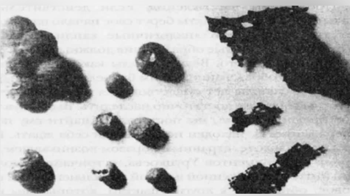 Но при этом легко растирались в порошок, который тоже не растворялся в кислоте. Химиками Ленинграда был сделан вывод о неприродном происхождении объектов. Подобные шарики могут быть произведены исключительно при максимально высоких температурах.