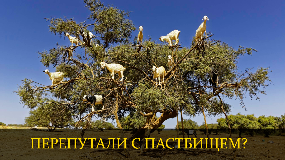 Марокканские козы стали одной из достопримечательностей страны: в сети есть фотографии, где эти животные, совершенно чудесным образом взобравшись на ветки деревьев, лакомятся свежими листьями и плодами. В таком виде козы сами издалека напоминают какие-то большие, даже будто бы неземные фрукты. Почему животные пасутся именно так? Замена пастбищу На снимках и видео массивные ветви арганового дерева плотно усеяны козами. Удивительное зрелище с энтузиазмом фотографируют туристы со всего мира — и действительно, где еще можно увидеть такое за пределами Марокко? Странное поведение рогатых объясняли тем, что климат в Африке жаркий и засушливый, а потому стандартных пастбищ попросту не найти, вот и приходится несчастным козам искать другие варианты. И альтернативу они выбрали для себя отличную. Аргановое дерево — эндемический вид Марокко, и с этого редкого растения получают листья и орехи, которые съедобны и высоко ценятся. Но главным ресурсом является аргановое масло. «Аргановое масло — одн