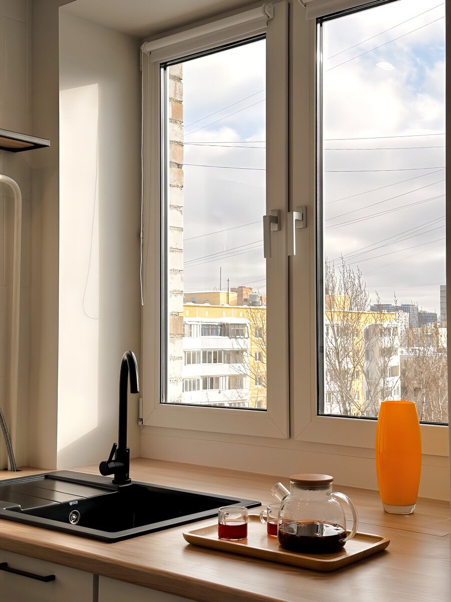 Честно говоря, уже не помню, у кого я украл эту фишку, но оконные ручки в этой квартире я все поменял на эстетичные металлические.