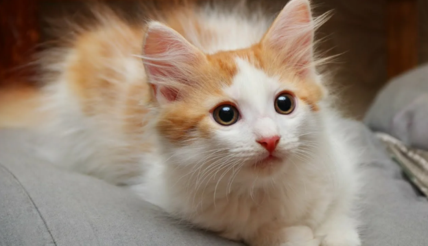 Вымытый и высохший котенок из грязного, неопределенного цвета лохматишки, превратился в беленького, с рыжими пятнышками, пушистика.
