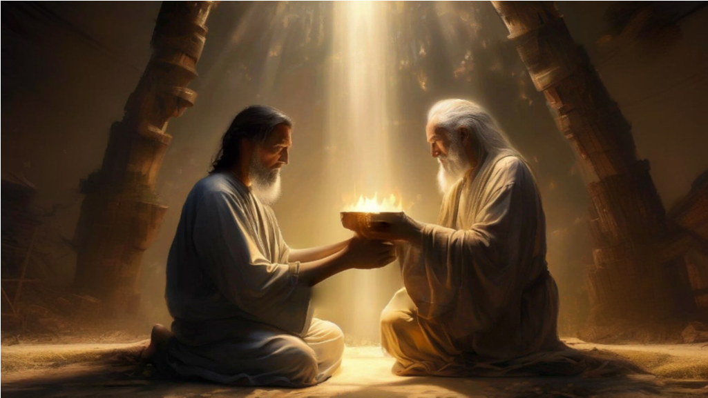 Учитель посмотрел на ученика, и улыбнувшись, обратился к сидящему подле его ног другому ученику. Назвав его по имени он спросил