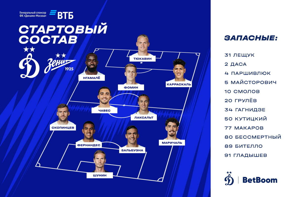 Ну вот, а писали, что у Маричаля перебор жёлтых. Хороший состав. По-моему, я его почти угадал: про Маричаля не знал. Вперёд, ребята! Даёшь победу! Мы за вас болеем! Ссылка на трансляцию: https://footbolik.online/dinamo-zenit-xfn-3313.html