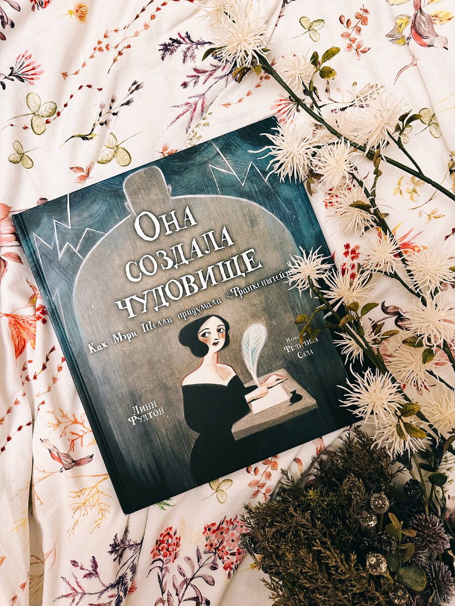 Страшная грозовая ночь, когда от раскатов грома вздрагиваешь каждые несколько секунде. Вспышки молний озаряют спальню, возле стола со свечей с кипой исписанных бумаг сидит молодая девушка. Она создает историю ужасов, чтобы утереть нос знакомым писателям-мужчинам, затеявшим литературное соревнование. Девушка не знает, что текст этих набросков будет издан сначала 5 сотнями экземпляров, потом и тысячами изданий, станет основой спектаклей, фильмов, мюзиклов, а по всему миру люди будут с трепетом и восхищением произносить имя Мэри Шелли. Томик «Она создала чудовище. Как Мэри Шелли придумала «Франкенштейн» – это книга-жемчужина, книга-конфетка для истинного фаната английской писательницы XIX века. Трепетно и нежно люблю готическую историю, поэтому с радостью приобретаю переиздания «Франкенштейна», подарочные версии и другую фанатскую продукцию. Мимо томика Линн Фултон и Феличиты Сала не смогла пройти мимо. Здесь представлена история создания великого романа. В книге мало текста, на к