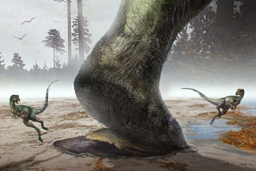 В городе Лэшань (Китай) местный житель разглядел больше 10 следов зауроподов на "полу" ресторана, в котором он решил отобедать. Команда ученых из Китайского университета геонаук с помощью 3D-моделирования подтвердили, что глубокие отпечатки оставили 2 бронтозавра. Раньше на месте ресторана находилась птицеферма. Отпечатки хорошо сохранились, т. к. были закрыты толстыми слоями песка и грязи. Двор очистили год назад, и владельцу заведения понравился как выглядит необработанный камень, поэтому никаким серьезным переделкам пол не подвергали. В этом городе ранее не находили следов динозавров, но теперь палеонтологи надеются в нём сделать новые подобные открытия. Хозяин ресторана огородил участок, чтобы посетители не наступали на следы и сделал специальный навес для дополнительной защиты. Наша группа ВК, Ютуб, Телеграмм