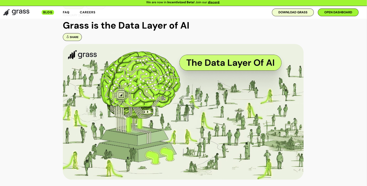GRASS — проект по распределению ваших не задействованных интернет мощностей, это децентрализованный протокол, а если быть точным - оракул, который позволяет зарабатывать будущие токены проекта GRASS за счёт использования вашей пропускной способности домашней сети через специальное Web-расширение. Имеют 4,5 млн $ инвестиций. Сейчас можно пассивно фармить (собирать) поинты проекта, которые будут конвертированы в токены. Кстати, поинты на OTC уже торгуется по 0,0024$. Что делаем?