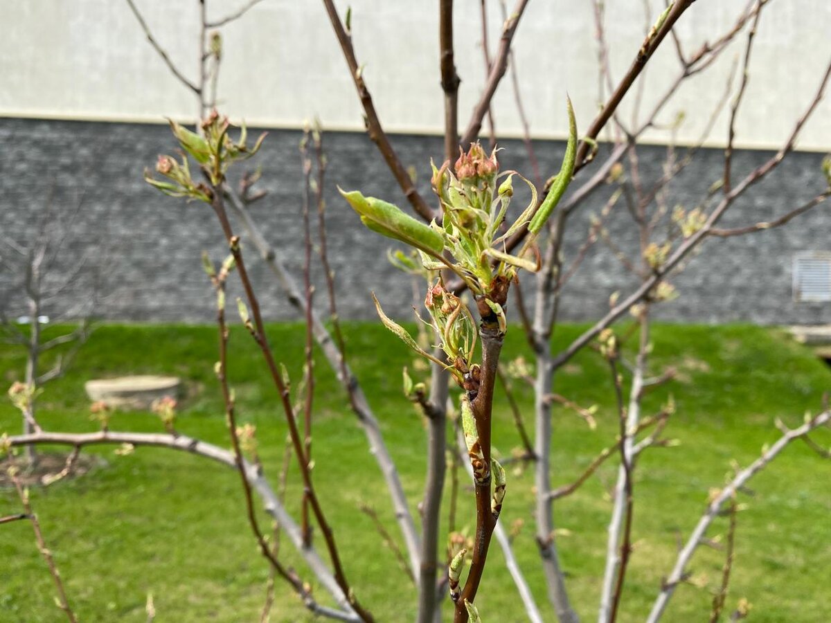 Скоро вспыхнет кружевами белых и розовых цветов молодой фруктовый сад. А пока нежно и весьма живописно просыпается.