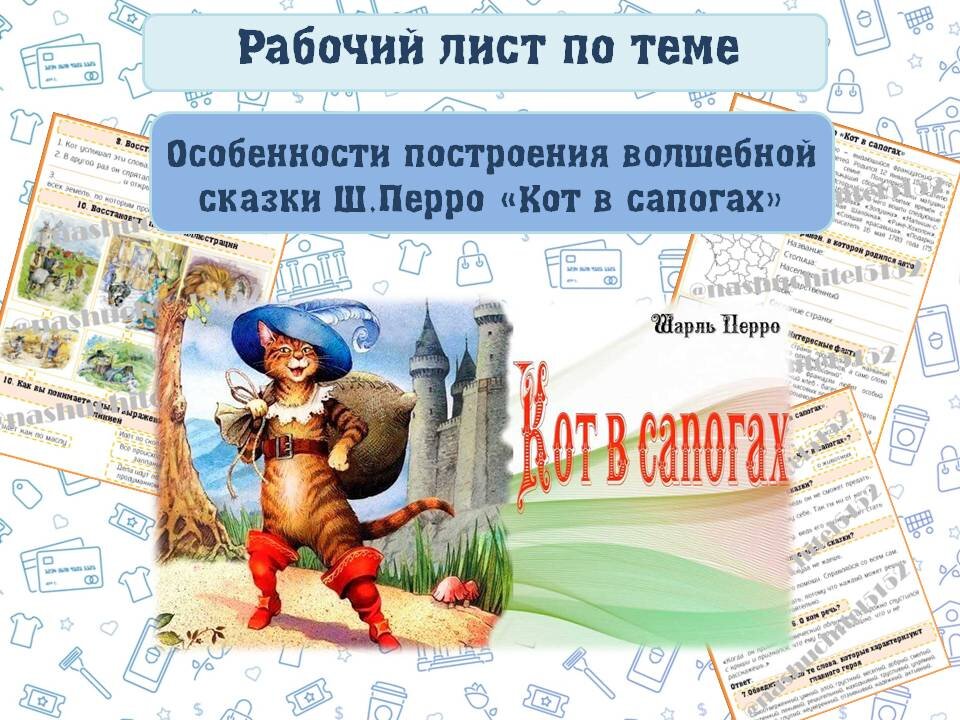 Рабочий лист по литературному чтению "Особенности построения волшебной сказки Ш.Перро «Кот в сапогах»». 2 класс. Отработка навыков анализа произведения с помощью наводящих вопросов. Подготовка к пересказу. Приобрести рабочий лист можно по ссылке: https://vk.com/nashuchitel5152?w=product-216254584_13976812%2Fquery