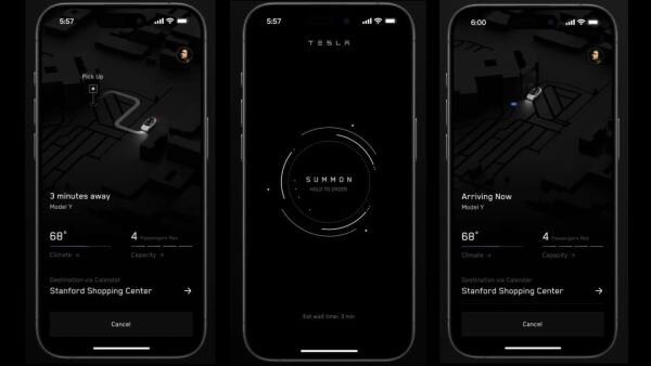 Представляя свои последние финансовые показатели на этой неделе, Tesla дала небольшой обзор своего анонсированного бизнеса по перевозки пассажиров. В будущем Tesla хочет сделать роботизированные такси конкурентными с такими лидерами этого направления, как Uber или Lyft, и доставлять пассажиров к месту назначения без водителя. Одним из основных элементов для этого станет приложение Tesla, которым до сих пор пользовались только владельцы электромобилей Tesla. Как сообщают Business Insider и Electrek, в будущем приложение Tesla будет предлагать отдельный пункт для «вызова такси». Предварительный просмотр функции заказа такси в приложении Tesla. Фото: Tesla «Поездка» вызывается удерживанием большой круглой кнопки в темном интерфейсе приложения. На скриншотах видно, что, возможно, нельзя ввести желаемый пункт назначения вручную. Его просто следует брать из записи календаря на своем смартфоне. На представленных изображениях показано, как белая миниатюрная Tesla перемещается по трехмерному ла