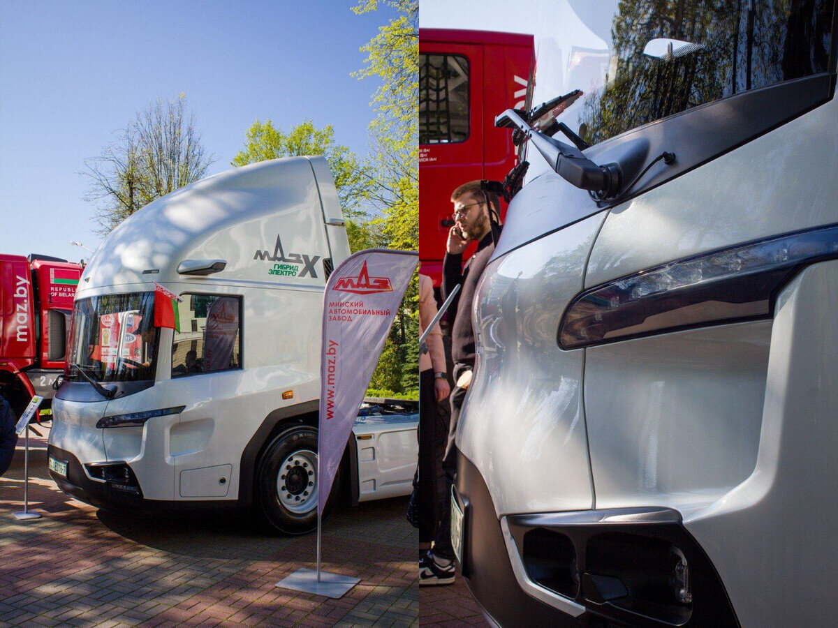 На дне открытых дверей в Минском государственном политехническом колледже впервые представили публике гибридный тягач MAZ-X. Ходовой прототип магистрального тягача нового поколения MAZ-X оснащён гибридной силовой установкой, состоящей из 300-сильного китайского дизеля Weichai и двух электромоторов. Тягач имеет односкатную ошиновку ведущей оси и 4-точечную пневмоподвеску заднего моста. МАЗ-Х отличается от серийных дальнобойных тягачей заниженной посадкой водителя, обтекаемой кабиной, футуристичным дизайном. Дабы стандартный полуприцеп не создавал лишнее аэродинамическое сопротивление, предусмотрен высокий обтекатель. Боковые зеркала заменены видеокамерами. Дверь в кабину гибрида открывается со сдвигом назад — как на туристических автобусах. Вдоль торпедо расположены несколько дисплеев для водителя, а в задней части кабины — эргономичный жилой модуль, в котором предусмотрены откидной столик, спальное место и отсеки для хранения вещей. Внутри автомобиля имеется даже выдвижная раковина. Ве