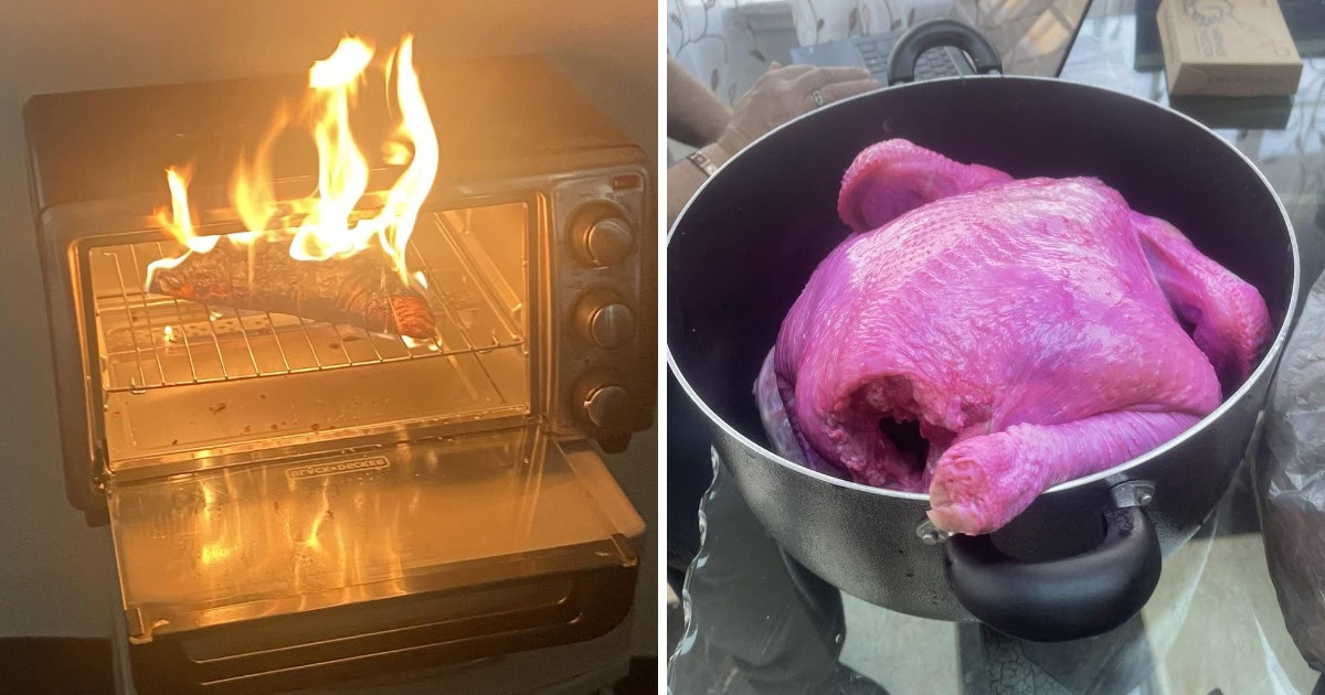 Приготовление пищи может стать для некоторых людей настоящей проблемой. Подгоревшая, пересоленая, жутковато выглядящая еда – это лишь малая часть неудач, которые могут поджидать на кухне. И обрушиться они могут как на новичков, так и на опытных поваров. Иногда кулинарам приходится переживать настоящий апокалипсис, а всё ради того, чтобы побаловать себя и свою семью чем-нибудь вкусненьким. Некоторые неудачи могут оказаться настолько невероятными, что вы попросту не найдёте слов, чтобы описать их катастрофичность в полной мере. Очень горячий круассан Мне нравится, что вместо того, чтобы потушить пожар, вы остановились, чтобы сфотографировать это всё. «Жених случайно оставил кастрюлю с сиропом на плите. Он сгорел, а внутри образовался настоящий астероид» Не трогай это! Это чистое, концентрированное зло! Будет весело чистить. «Во время приготовления печенья у меня закончился пищевой краситель, и теперь тесто выглядит как трансплантируемый орган» Я думал, ты держишь ветчину. «Печенье в виде