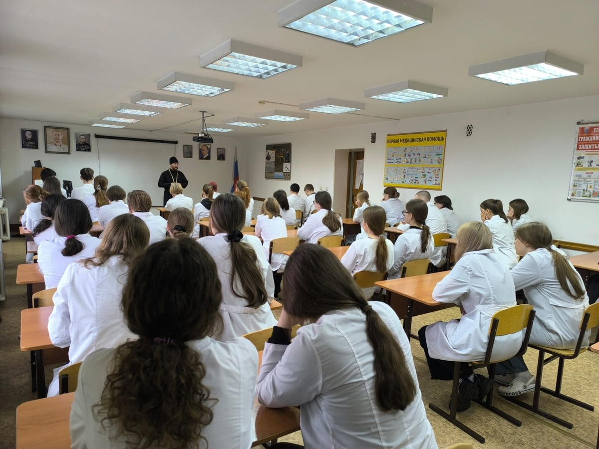 22 апреля 2024 года благочинный 3-го Новокузнецкого округа, настоятель храма св. вмч. Георгия Победоносца протоиерей Евгений Суркин посетил Новокузнецкий филиал ГБПОУ «Кузбасский медицинский колледж».