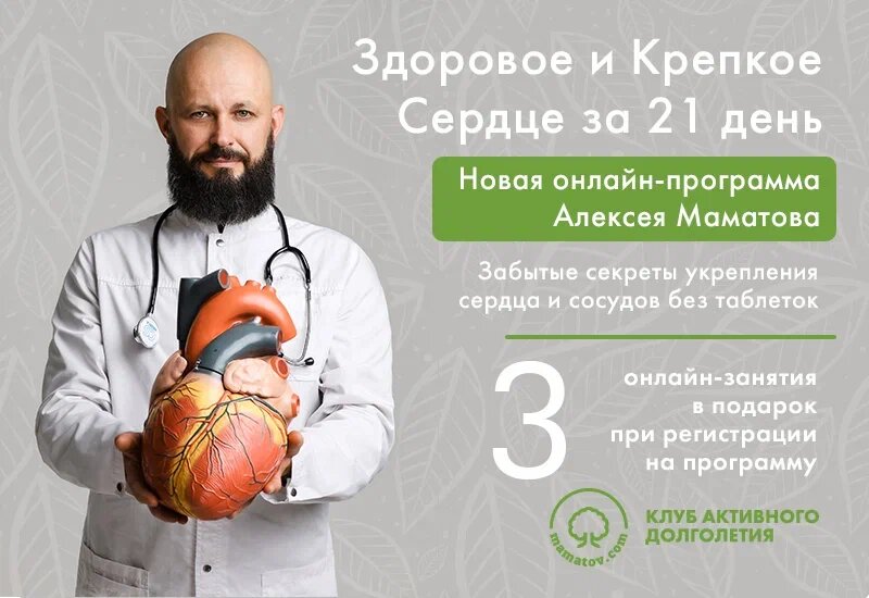 Резкие, ноющие, покалывающие боли в сердце, отдающие в руку, грудь или спину… Знакомо? Или одышка на 10-ой ступеньке, бессонные ночи из-за неровного ритма, или хуже — внезапный сердечный приступ... Уверен, что у многих найдётся своя неприятная история (или у близких/знакомых). Не удивительно, ведь болезням сердца подвержены все люди старше 40 и особенно те, кто находится в зоне риска. И чем больше современная медицина развивается, тем больше загадок и вопросов появляется: Вы удивитесь, но большинство врачей и учёных не знают ответа на эти вопросы. Зато прекрасно разбираются в том, как замаскировать симптомы таблетками и «фуфломицинами». А что дальше? «Судьба» покажет... Мой Друг, пришла пора помочь своему «вечному двигателю»! Я приготовил для Вас мини-ролик, посвящённый сердечным проблемам и тайнам. Если Вас (или Ваших близких) когда-нибудь тревожило состояние жизненно важного органа или Вы хотите избежать страшной и часто непредсказуемой участи, такой как Ишемия, Инфаркт и внезапная