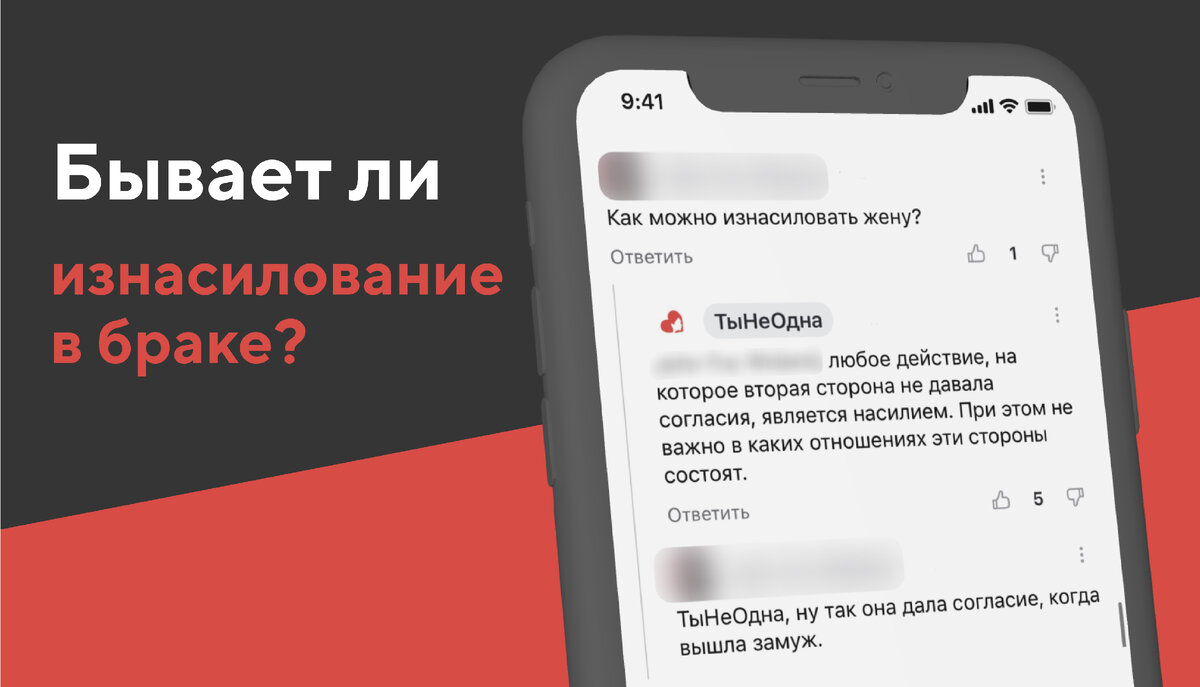 В рамках проекта “ЯНеСказалаДа” разбираемся, почему изнасилование в браке бывает, как закон защищает пострадавших и что иногда толкает женщин на секс с партнером без желания. Изнасилование может совершить как незнакомый человек, так и муж/парень/партнер. Уголовный Кодекс РФ не делит насилие на супружеское и не супружеское. Любые действия сексуализированного характера, совершенные помимо воли партнера, являются уголовно наказуемыми. Кроме изнасилования Уголовный кодекс РФ предусматривает наказание и за иные сексуализированные действия против воли партнера: насильственные действия сексуального характера (ст. 132), понуждение к ним (ст. 133), сношение с несовершеннолетними (ст. 134) и растление (ст. 135). Наличие факта брака пострадавшей с обвиняемым в изнасиловании не является смягчающим обстоятельством. Проблема сексуализированного насилия в браке заключается еще и в том, что иногда пострадавшие верят в то, что они обязаны заниматься сексом с партнером. Может быть такое, что даже если
