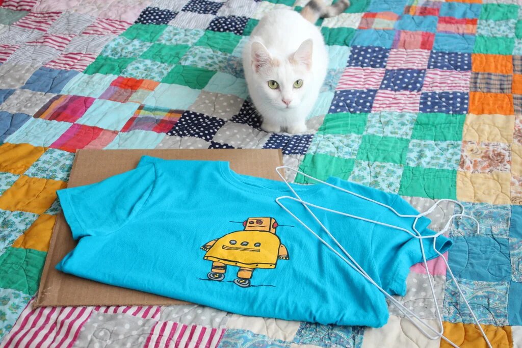 Этот домик-палатку для кошек очень легко сделать: вам понадобится всего лишь футболка, несколько вешалок из проволоки и небольшой кусок картона. Даже если Ваш питомец проигнорирует Ваше творение, не расстраивайтесь, вы действительно не потратите на него много времени. Шаг 1. Что нам понадобится Шаг 2: Подготовим вешалки Отрежьте самую верхнюю часть у обеих вешалок. Шаг 3. Придаем форму вешалкам + при необходимости укрепляем картон. Придайте вешалкам форму, как показано выше: постарайтесь сделать их ровными и максимально одинаковыми. Вам нужны две изящные кривые, которые будут идти от угла к углу вашего куска картона. Если Ваш отрезок картона складывается, то необходимо укрепить края отрезками картона, закрепив их скотчем. Шаг 4: Делаем отверстия Концом вешалки или острым шилом делаем отверстия в каждом углу нашего картона. Убедитесь, что отверстия находятся на достаточном расстоянии от края и не слишком большие по размеру. Шаг 5: Скрепляем вешалки вместе Перекрестите две вешалки посере