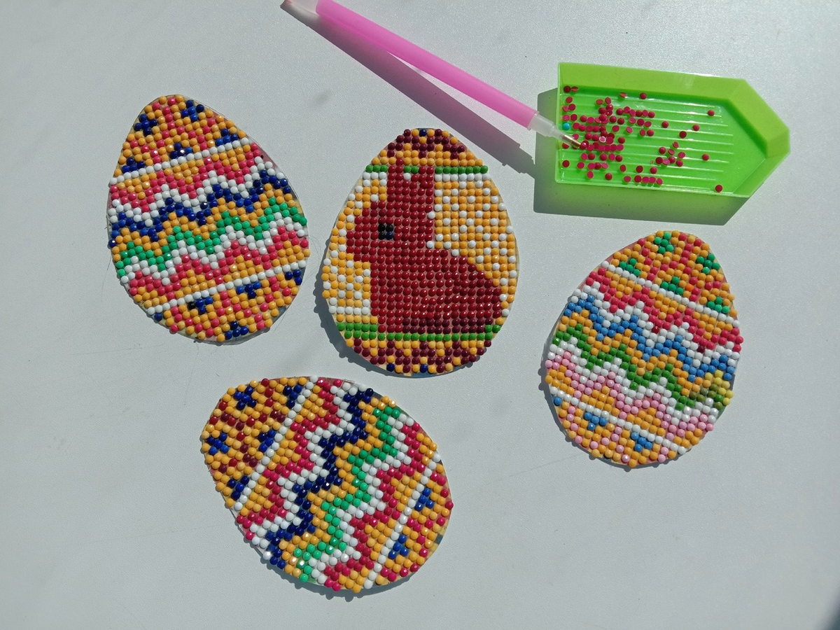 Сейчас самое время, когда детям можно рассказать о Пасхе, о том, что это за праздник и что мы празднуем. И одним из способов привлечь внимание детей - это совместное творчество. Я уже много лет в нашем сельском Доме Культуры провожу для детей творческие мастер-классы, и стараюсь приурочить их к сезонным праздникам. На Новый год мы делаем ёлочные игрушки, к 8 марта подарки для мам, А к Пасхе разные милые поделки, которые можно использовать как подарки или декор стола. На прошлой неделе с детьми мы делали пасхальные мини-открытки из остатков алмазной мозаики. Посмотрите, какая получилась красота. Готовую схему для мозаики я нашла в интернете среди схем вышивки крестиком. Распечатала схему, приклеила к картону, сверху двусторонний скотч (он прозрачный) и можно выкладывать мозаику. О том, как я использую остатки страз из алмазной мозаики, я писала в этой статье. Вы только посмотрите, с каким удовольствием дети занимаются этим рукоделием! А мы еще и на улице провели это занятие -еще больше