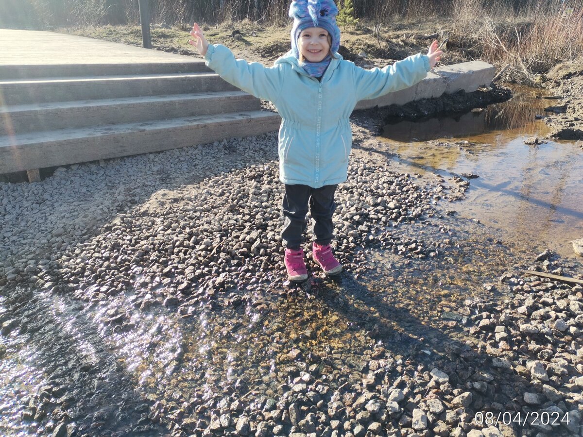 Забрала Агнию из садика. Они только на прогулку вышли. У крыльца забрала её.