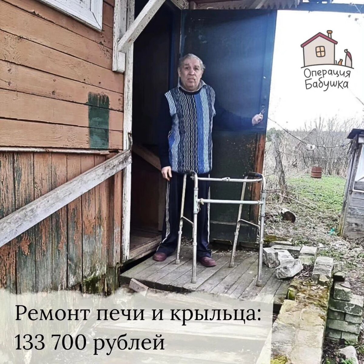 Старость, одиночество, болезнь - страшно, когда они приходят все вместе. Николаю Николаевичу нужна помощь. Фонд "Операция Бабушка" открыл срочный адресный сбор на ремонт крыльца и печи. Поддержите нас.