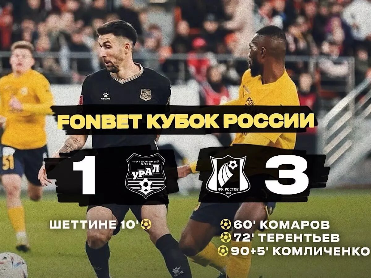 «Ростов» на чужом поле победил «Урал» в матче первого раунда полуфинала Пути регионов ФОНБЕТ Кубка России.