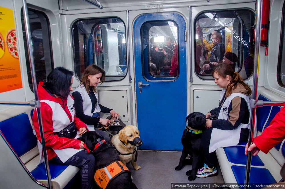 Эти собаки - не просто домашние любимцы. Они значительно облегчают жизнь своим владельцам и, можно сказать, жизненно необходимы. Это собаки-проводники для незрячих людей Может возникнуть закономерный вопрос - а какое отношение собаки-проводники имеют к тематике блога? Самое прямое - ведь транспорт - серьёзное испытание не только для слепого пассажира, но и для его четвероногого проводника Подъем и спуск на эскалаторе, входы и выход из вагона, да даже простые двери вестибюлей - банальные и привычные вещи для большинства из нас - могут стать серьёзной преградой для тех пассажиров, которым в жизни повезло меньше Добавьте к этому шум, который в метро останется даже если все-все поезда завтра заменить на "Москву" последней модели Именно поэтому будущие собаки-проводники проходят специальную подготовку для работы в метро Российская школа подготовки собак-проводников всероссийского общества слепых проводит эту работу совместно с центром организации мобильности пассажиров метрополитена Обучена