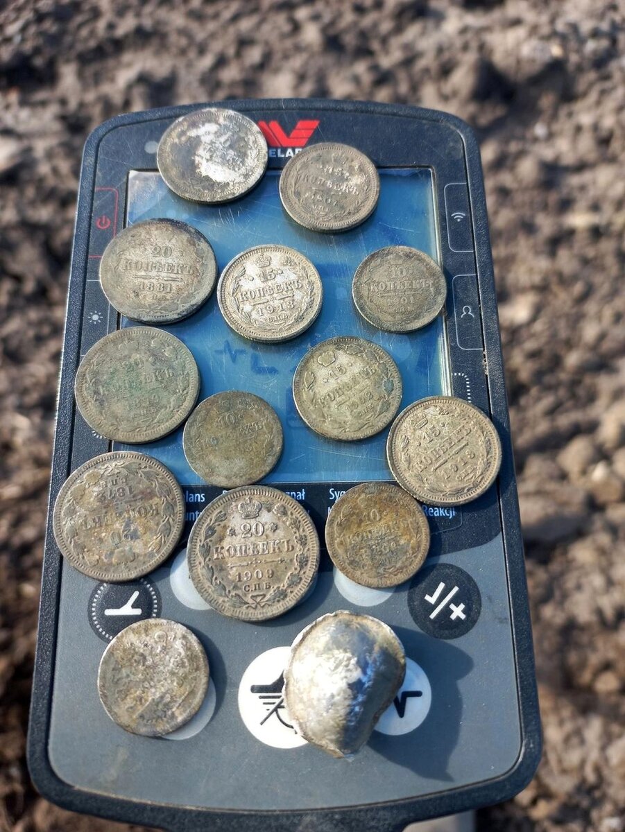 На минувшей неделе клады были почти все размером с кошель. Но на безрыбье и рак рыба! Давайте посчитаем, сколько оказалось в тех кошелях. 1. Царское серебро. Кладоискатель Игорь в весенний период не дремал. А моет, и дремал, и ему все это приснилось. Так или иначе, мы видим на фотографиях откопанные серебряные монеты поздней Российской Империи, найденные с металлоискателем Minelab Equinox. В соцсети есть подпись, что находки сделаны за три дня. Комментаторы уже предположили, что Игорю удалось наткнуться на распаханный клад. Среди фото с общим уловом заметны советские монеты. Вероятно, коп был на поселении, распаханном в поздние советские годы. 2. Серебряная чешуя. Находить серебро всегда приятно. Когда его чуть больше, чем одна чешуйка — приятно вдвойне. Кладоискатель, предположительно из Ленинградской области, 12 апреля 2024 года написал ВК «130 монет с одной ямки» и приложил фото. 3. Римское серебро. 12 серебряных римских монет и нечто, напоминающее монету золотую, откопал кладоискат