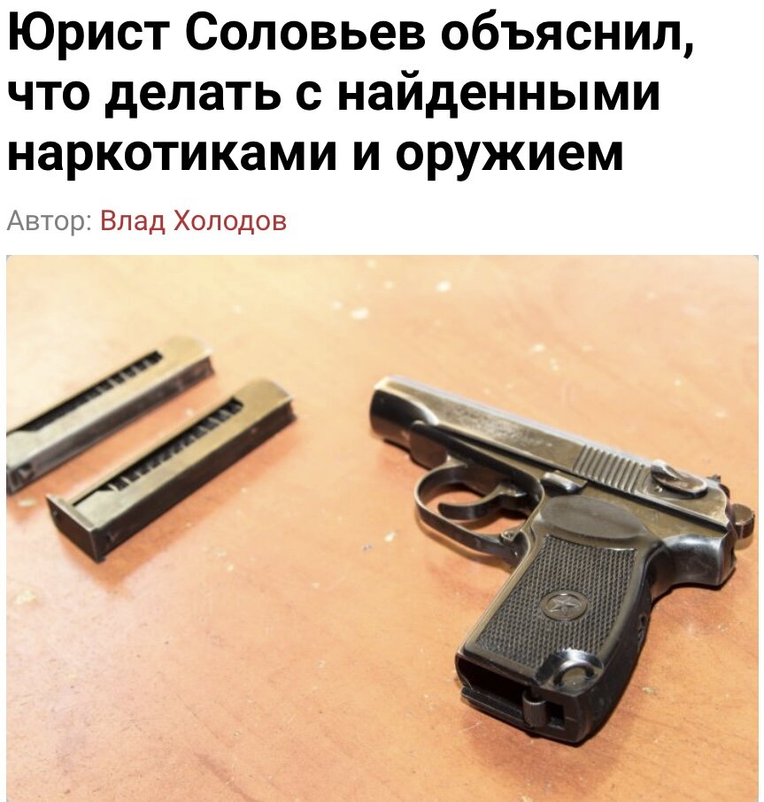 Нашел оружие или наркотики, что делать? Советы заслуженного юриста России Ивана Соловьева.