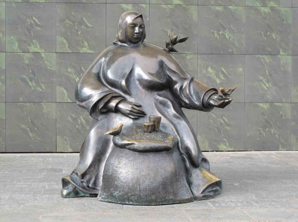 Одной из достопримечательностей столицы Беларуси является бронзовая скульптура «Торговка и воробьи», как дань всем продавцам семечек, установленная на входе в «Комаровский рынок» города Минска.
