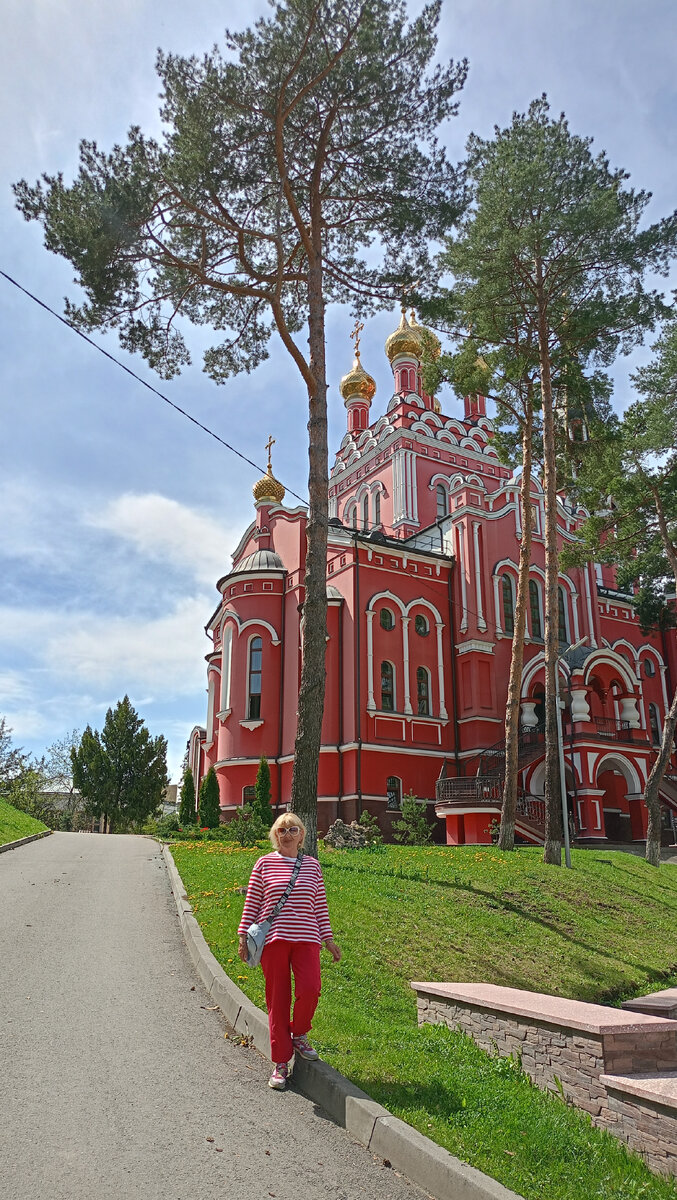 Последний день очень жаркий. До 31 градуса! На солнце очень жарко, а в тенистых местах, да если ветерок, то хорошо! Настоящее лето сейчас. Но я то знаю, что после апрельской жары тут могут случится майские холода. А в прошлом году и апрель холодный был. Мы так ждали тепла. У меня были босоножки и новый педикюр сделан в Ессентуках. И брючки летние были. Но жары не было! Сейчас жара есть, но ни босоножек, ни свежего педикюра, ни летних брючек, а тем более платьев- нет. На такую жару я совсем не расчитывала. Красная х/б тельняшка куплена в тему. В ней не было жарко на прогулке. Ходили утром к Храму Святого Пантелеймона. Мой любимый святой! У Храма история очень не простая. Расскажу вам еë отдельно. Хотя два года назад об этом говорила. Но это было давно. Думаю многих из вас тогда не было здесь на канале. К Храму шли красивым путëм мимо скульптуры, видео которой я здесь уже разместила. И ещë одну скульптуру встретили. Потом мы зашли на территорию Храма и прибыли там довольно до