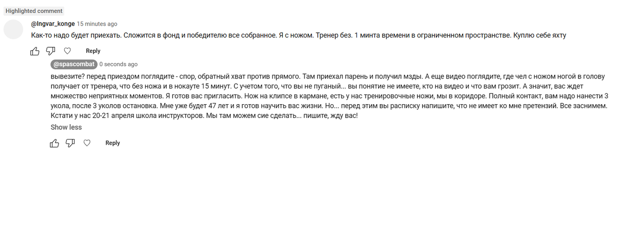 Так вот, спор и ответка произошли в рамках ножевого боя, а где же рукопашка.