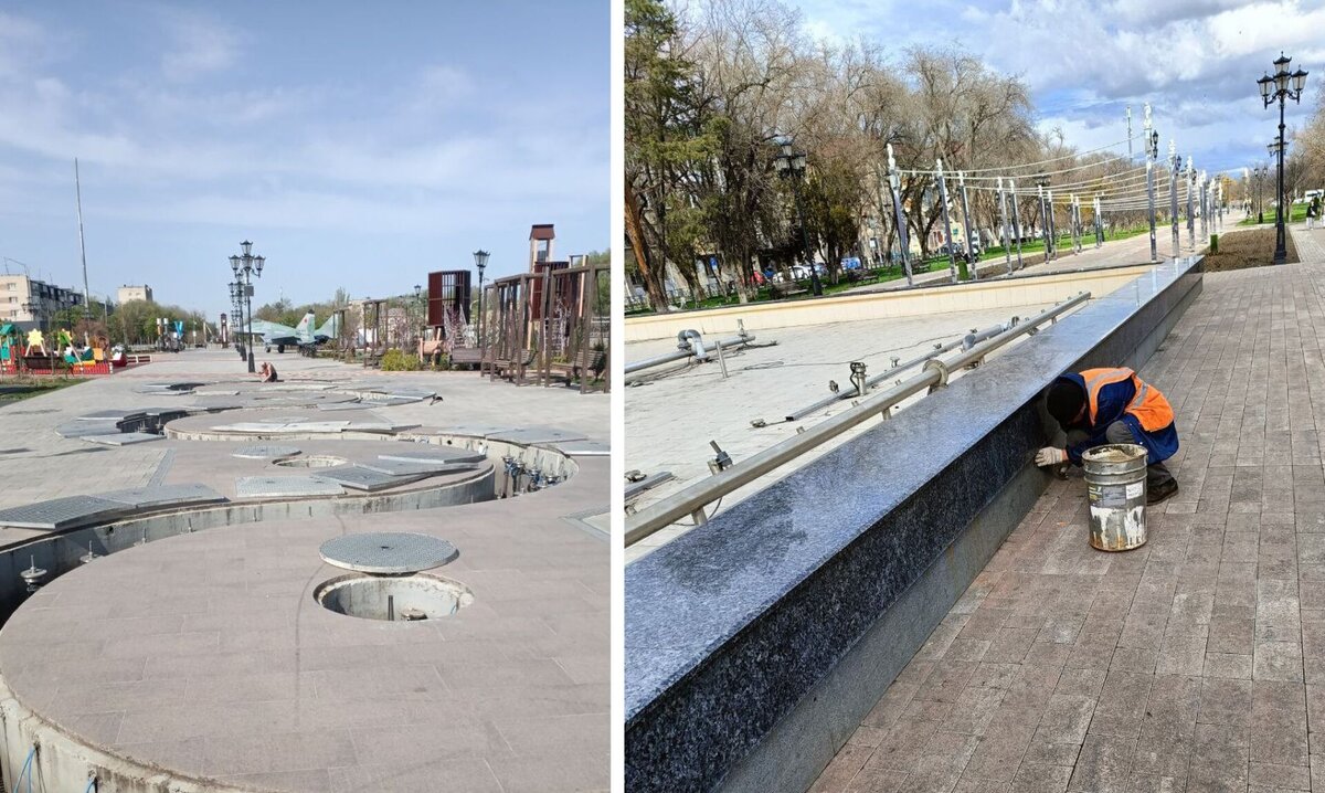 Специалисты промывают фонтаны, а также обновляют при необходимости системы подсветки и другие механизмы.