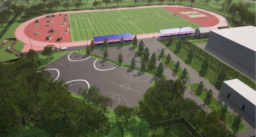 Также для спортсменов и любителей установят скамейки, трибуны, туалеты и раздевалку. А по периметру стадиона смонтируют новое освещение.