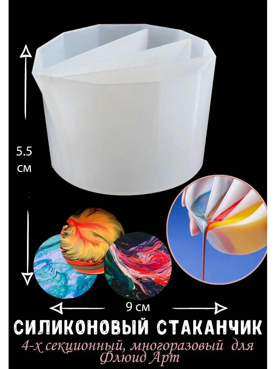 Всем привет! В последнее время меня увлекло творчество, связанное с эпоксидной смолой. Что я уже только не пробовала из нее делать и столько же еще хочу попробовать)) В маркетплейсах стало появляться просто огромное количество разнообразного декора, молдов, заготовок и т.п. для такого вида рукоделия. Вот и пришла мне в голову мысль написать для вас небольшую статью с обзором на интересные находки. Все ссылки закрепляю в названиях, если захотите почитать про что-то подробнее. 1. Силиконовый стакан на 4 секции Интересное решение, чтобы заливать одновременно 4 разных цвета. Благодаря разделителям цвета между собой в стакане не смешиваются, что позволяет получить более чистый рисунок. Можно использовать и не только для эпоксидной смолы. Размер стаканчика: 5,5 х 7,9 x 9 см. 2. Жидкая поталь Производитель обещает визуальный эффект настоящего металлического покрытия. Если честно, то не уверена будет ли этот эффект отличаться от обычной акриловой краски. Все-таки поталь сложно чем-то заменит